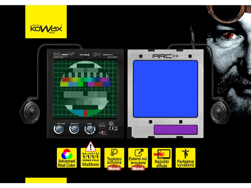 - Najvyššia optická kvalita filtra 1/1/1/1 EN379, aj v tejto špecifikácii sú medzi výrobkami na trhu značné rozdiely. KOWAX prekonáva svetovú konkurenciu a definuje novú úroveň optického komfortu pre zváračov tým, že poskytuje rádovo lepšie výsledky v rozptyle svetla cez zatemnený filter (druhé číslo v špecifikácii EN379 - rozostrenie - pozri tu načrtnuté), táto hodnota je absolútne rozhodujúca pre optický komfort pri zváraní. Vaše oči musia menej zaostrovať, čo má za následok menšiu únavu očí, menší sklon k bolestiam hlavy atď. Rozdiel si všimnete.